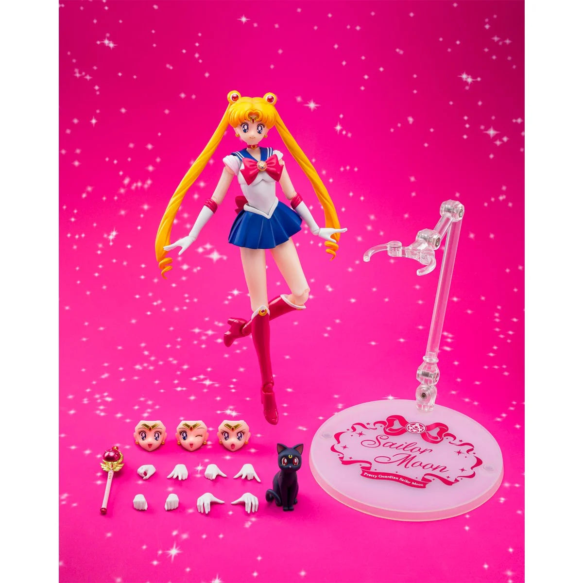 From Pretty Guardian Sailor Moon R comes Sailor Moon wearing the Crystal Star Compact! With fully revamped articulation and sculpting, she looks even more dazzling! She comes with 4x interchangeable hand parts (each for left and right), 3x interchangeable facial parts, Cutie Moon Rod, Luna, and a complete stand. The Pretty Guardian Sailor Moon R Sailor Moon Crystal Star Compact Edition S.H.Figuarts Action Figure measures approximately 5 1/2-inches tall. Add this Sailor Scout to your collection!